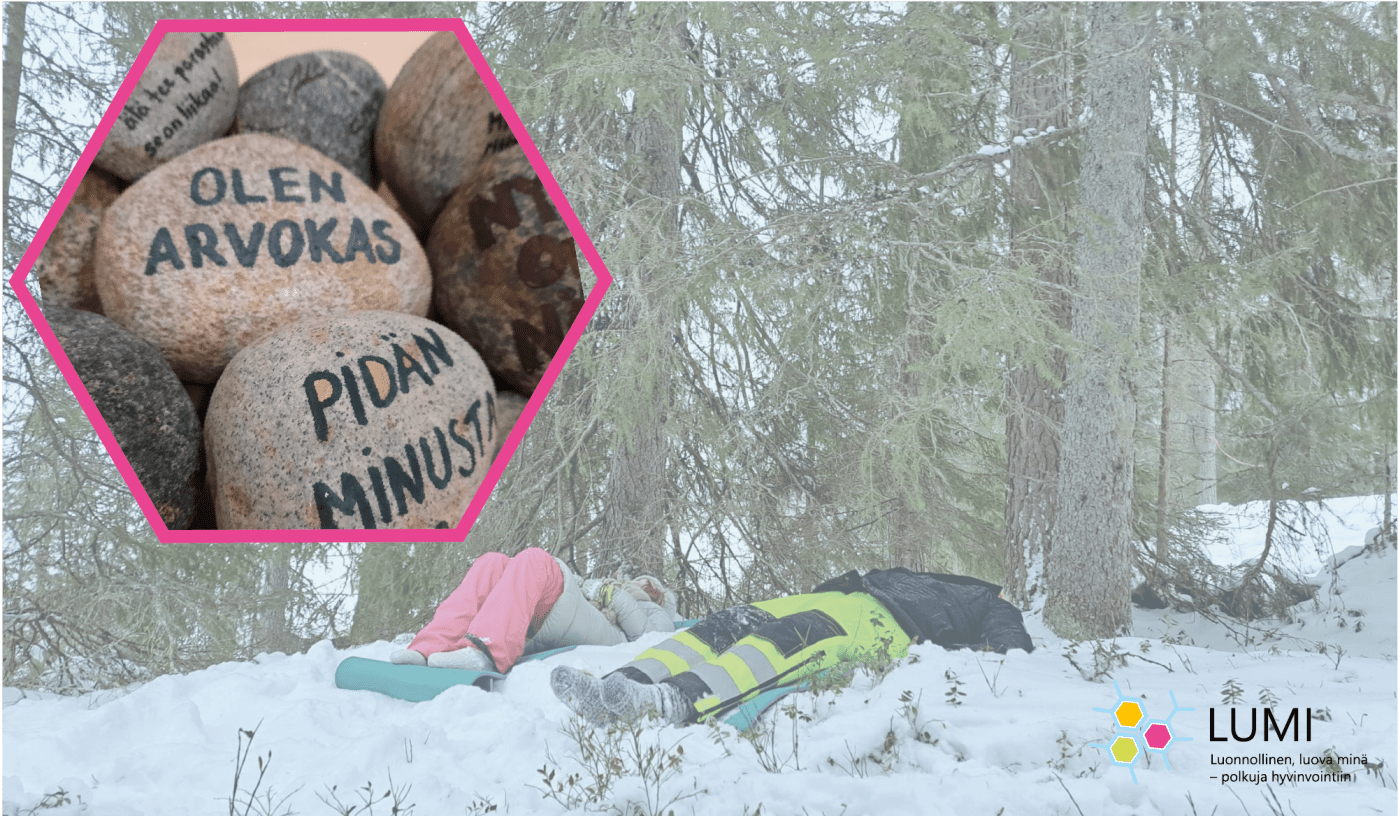 Luonnossa tehdyt harjoitteet olivat monelle mieluisimpia – heillekin, joille ryhmän alussa tuotti vaikeuksia olla luonnossa esimerkiksi liikkumisvaikeuksien tai vääränlaisen pukeutumisen vuoksi. Vaatetukseen ja tapaan olla luonnossa löytyivät omat keinot. Retket sisälsivät retkiaskareiden, luovuuden ja läsnäoloharjoitusten lisäksi luontotietoa, maantietoa ja paikallishistoriaa.